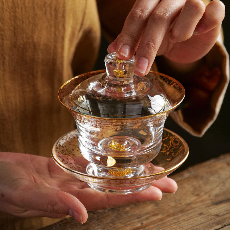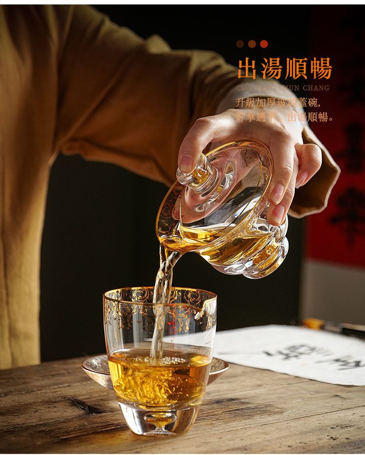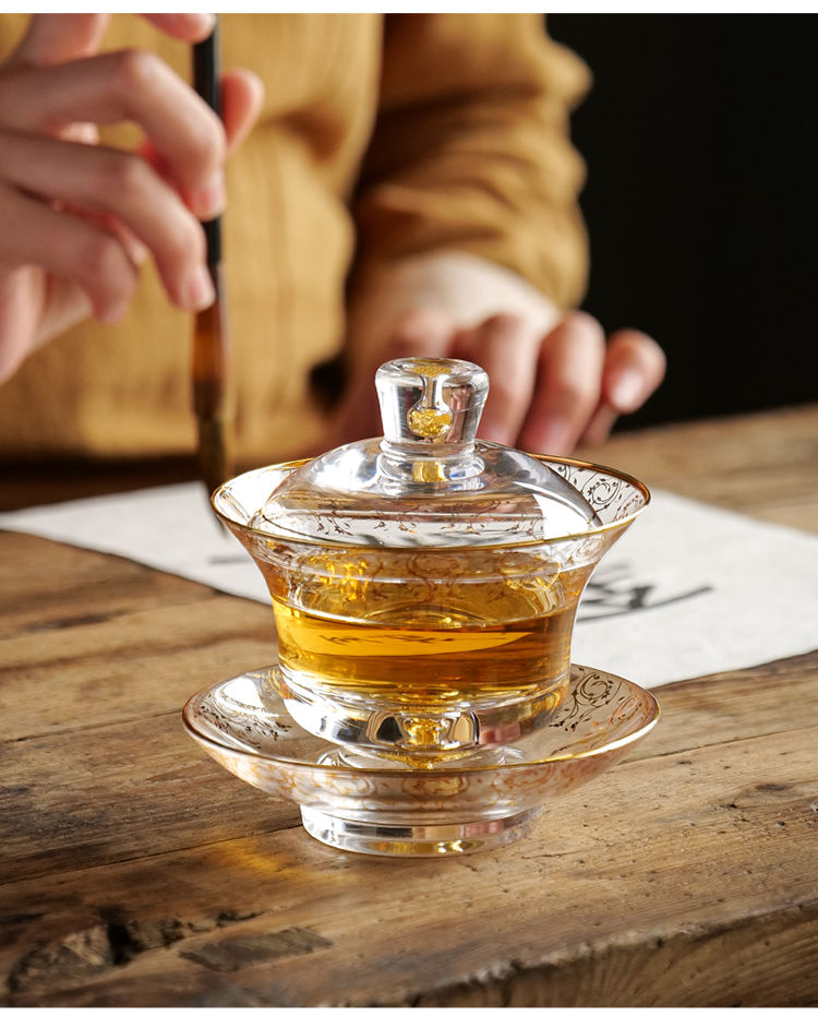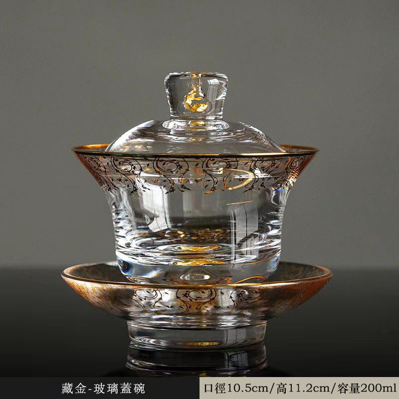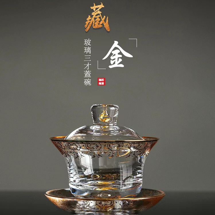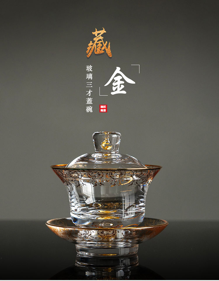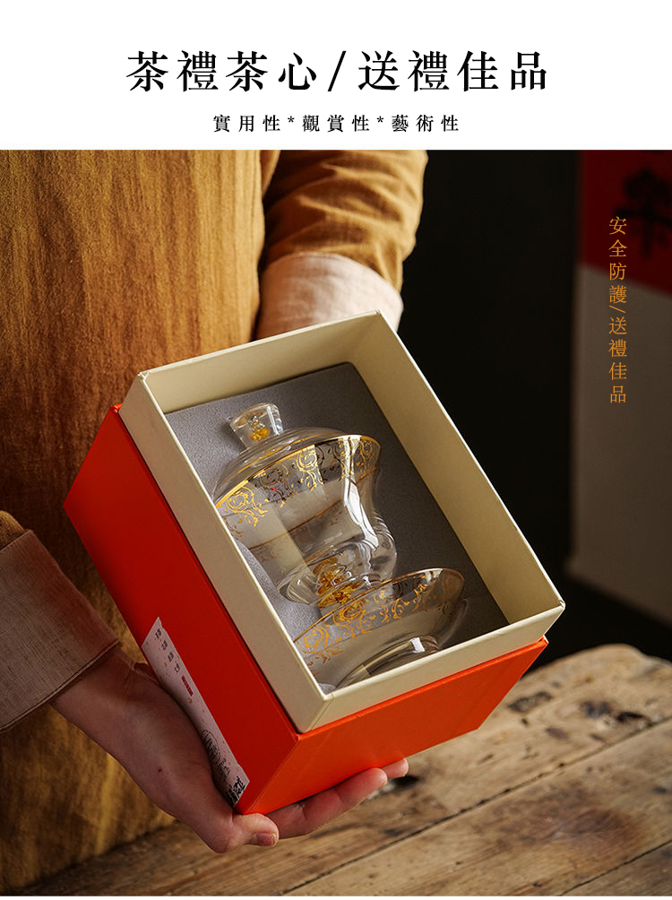 20分鐘前【汀和大福】藏金水晶玻璃三才蓋碗 - 藏金水晶三才蓋碗禮盒裝